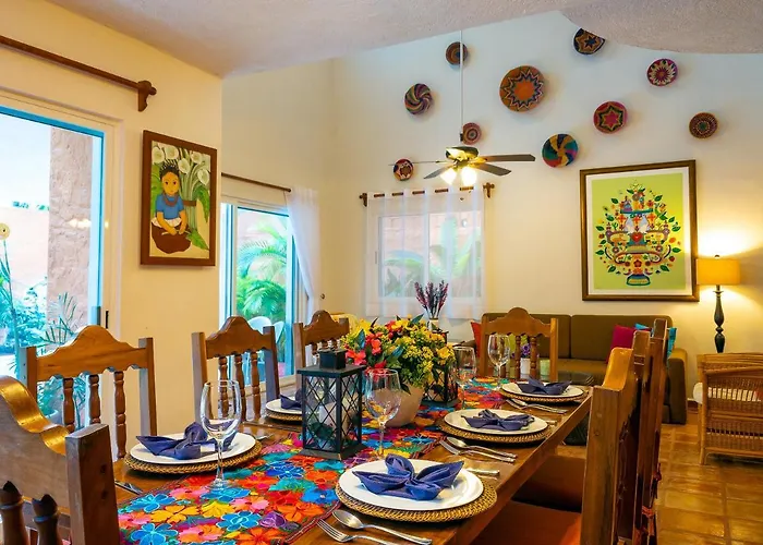 Die Casa Mulder - Steps To Beach Private Pool Ocean-View Roof Puerto Morelos bietet Gästen Tauchen und Angeln und liegt lediglich 7 Gehminuten vom Faro Inclinado entfernt. Die Villa in Puerto Morelos bietet Gästen WLAN und Parkplätze und ist in rund 700 Meter Entfernung vom Club de Playa.